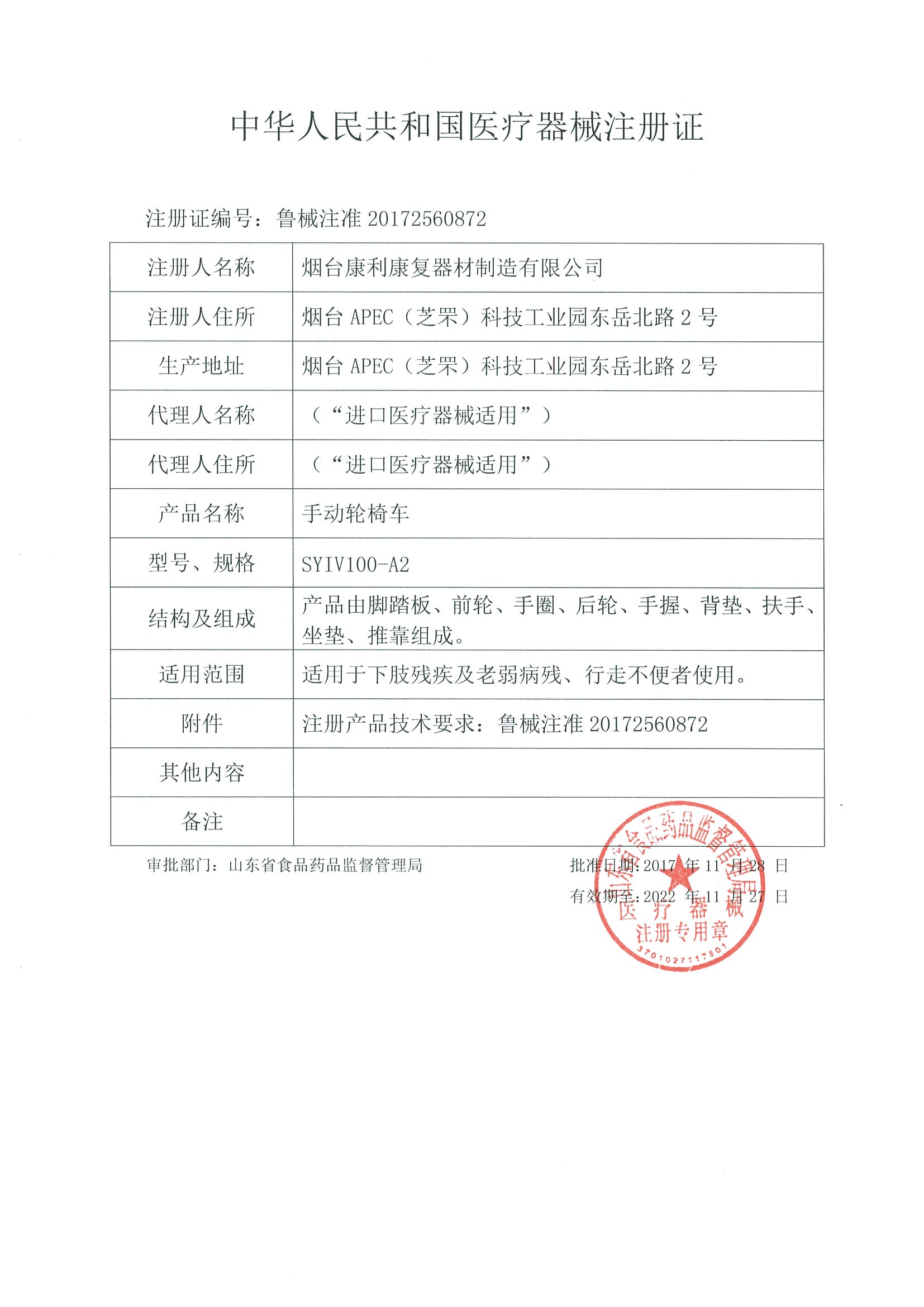 煙臺康利康復器材制造有限公司成立于1993年。公司自成立以來一致致力于手動輪椅車、電動輪椅車、手搖三輪車、手動護理床、電動護理床、座便椅、洗浴椅、助行器、拐杖等康復輔助器具的研發、生產和銷售。經過20多年的不懈努力,我們先后研發和生產了130多個品種的康復輔助器具,產品銷售覆蓋國內95%以上的省市自治區,國外十多個國家和地區,得到了各級政府及最終用戶的信賴與肯定。公司于2000年起先后通過了IS09001質量管理體系認證、IS013485醫療器械管理體系認證、1S014001環境管理體系認證、職業健康安全認證、售后服務五星級認證、歐盟CE安全認證等。